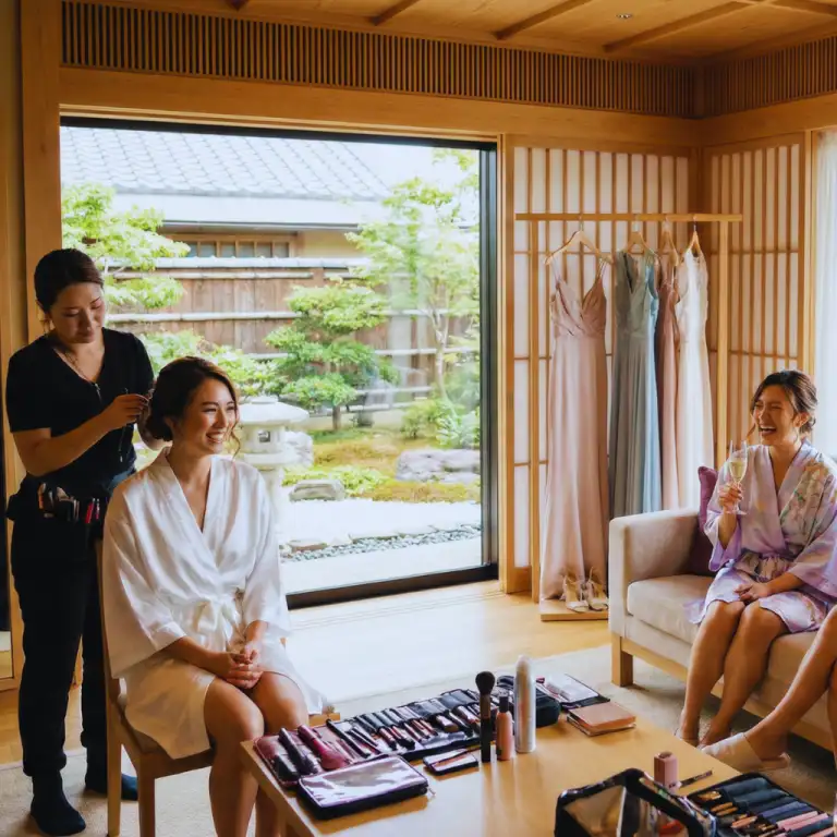 Your ceremony, your way - shrine, temple, garden, or modern venue. We handle florals, photography, styling, and every detail to make your day flawless. Through our connections in Japan's beauty world, we'll pair you with top stylists, hair and makeup artists, and kimono dressers.